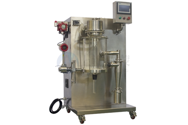 實驗型噴霧干燥機設計緊湊,可移動。本機配套齊全,無需輔助設備即可使用。采用PLC控制,觸摸屏顯示,中英文操作界面。主要用于食品、生物、飲料、化工、材料、制藥等企業的高等院校、科研院所和實驗室開發生產微顆粒粉體。適用于生物制品、生物農藥、酶制劑等敏感物質的干燥,因為被噴物料只有在噴成霧狀顆粒時才暴露在高溫下。所以它們只被瞬間加熱,這些活性物質可以在干燥后保持。有效成分沒有被破壞。